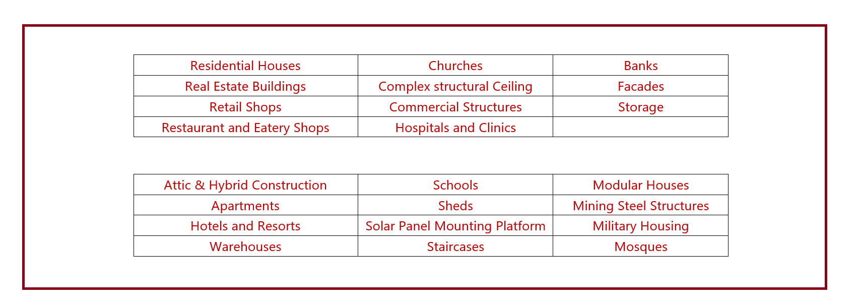 • Floors & Joist/Light Steel Beam